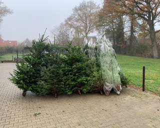 De grote kerstbomen verkoop door de Raad van Elf van De Bosdûvelkes bij Morsink Dier en Hobby in De Lutte.