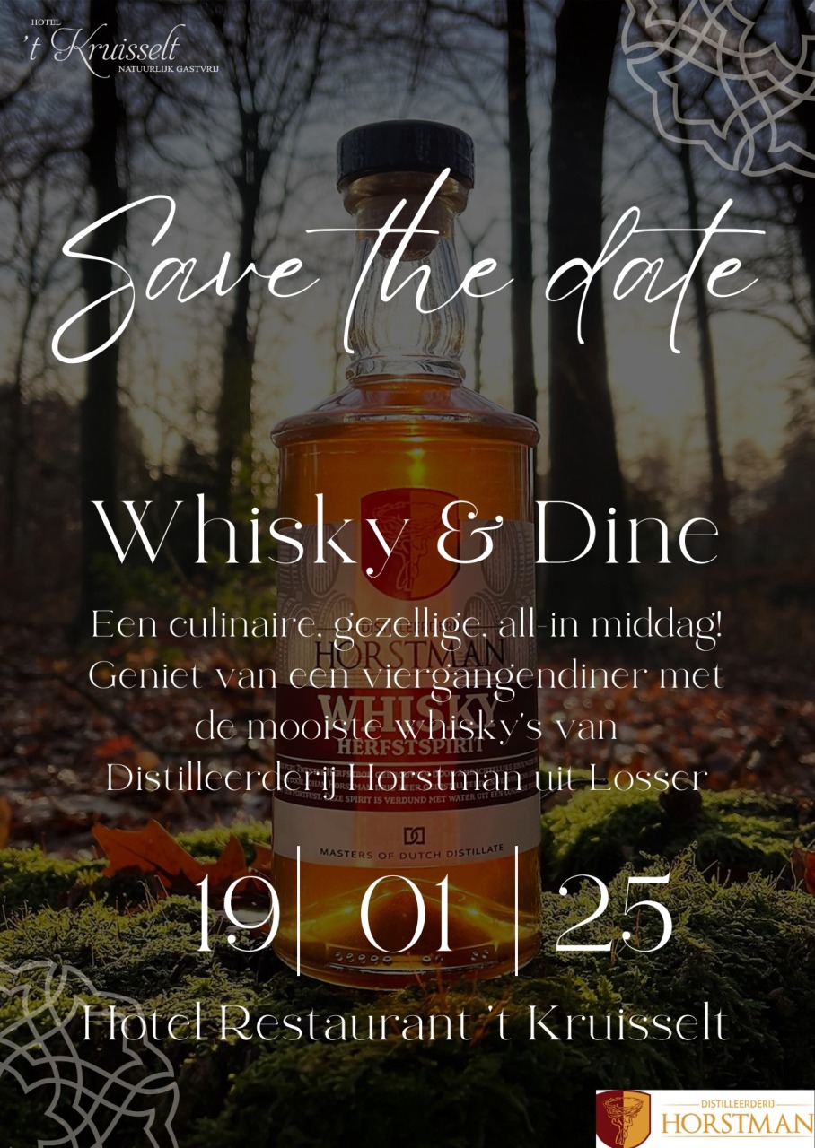 In samenwerking met meesterdistilleerder Johan Horstman vindt er een bijzonder evenement plaats: de Whisky & Dine Matinee. Een heerlijke middag waarin goed eten, bijzondere whisky’s en de verhalen van een echte vakman centraal staan.