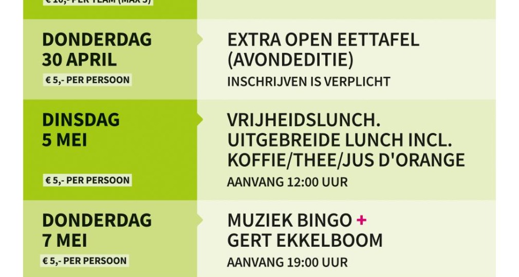 Op dinsdag 5 mei de Vrijheidslunch.