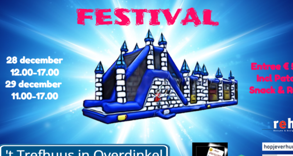 Het springkussen Festival is een evenement van Stichting Fundament Kids in de sporthal van het 't Trefhuus in Overdinkel.