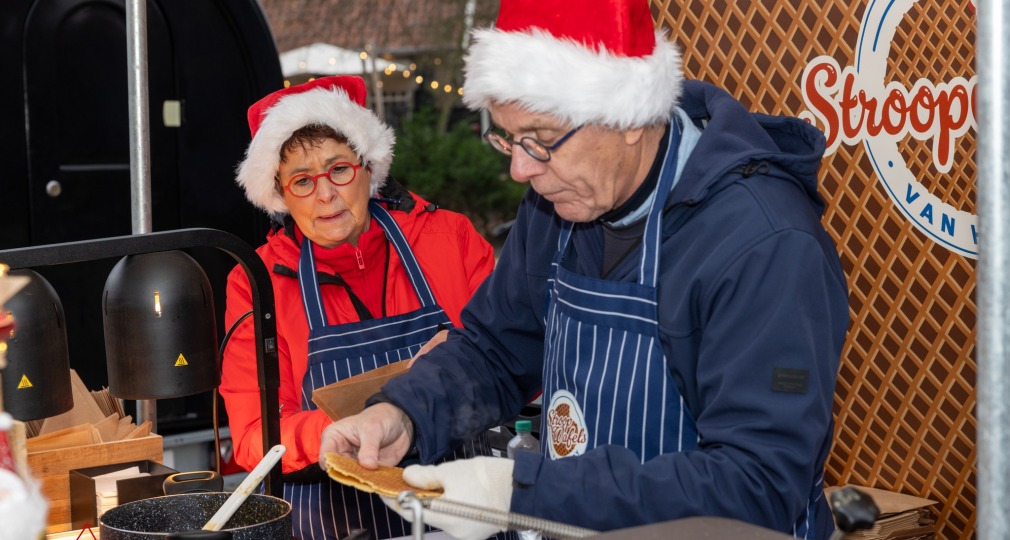 Tijdens de Kerstmarkt van Overdinkel, bruist het dorpsplein met de warme gloed van kerstkramen en de klanken van livemuziek.