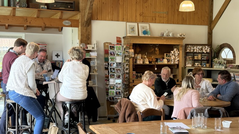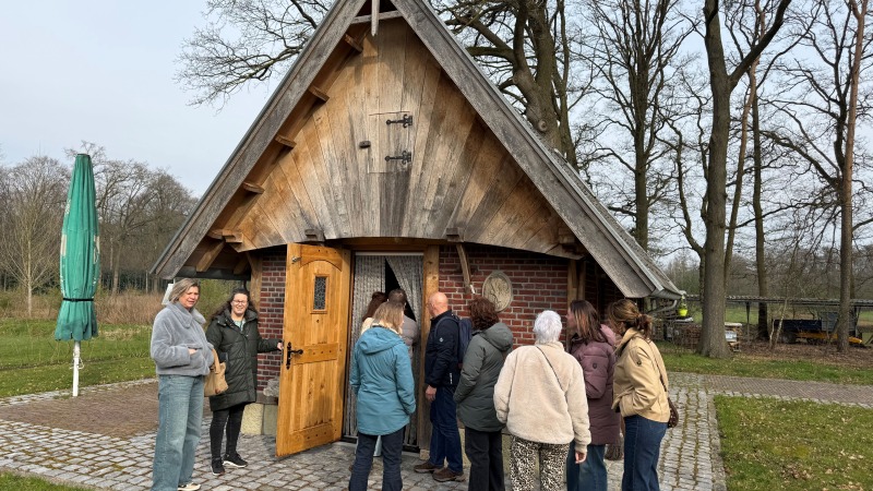 De dag begon bij Minicamping Poort Bulten, waar Simone en Marco Benneker ons hartelijk ontvingen. De koffie met iets lekkers stond al klaar en na een warm welkomstwoord kregen we een rondleiding over de camping. Daarbij namen we ook een kijkje in de nieuwe trekkershut, een mooie aanvulling voor wandelaars en fietsers die willen genieten van een comfortabel verblijf midden in de natuur.