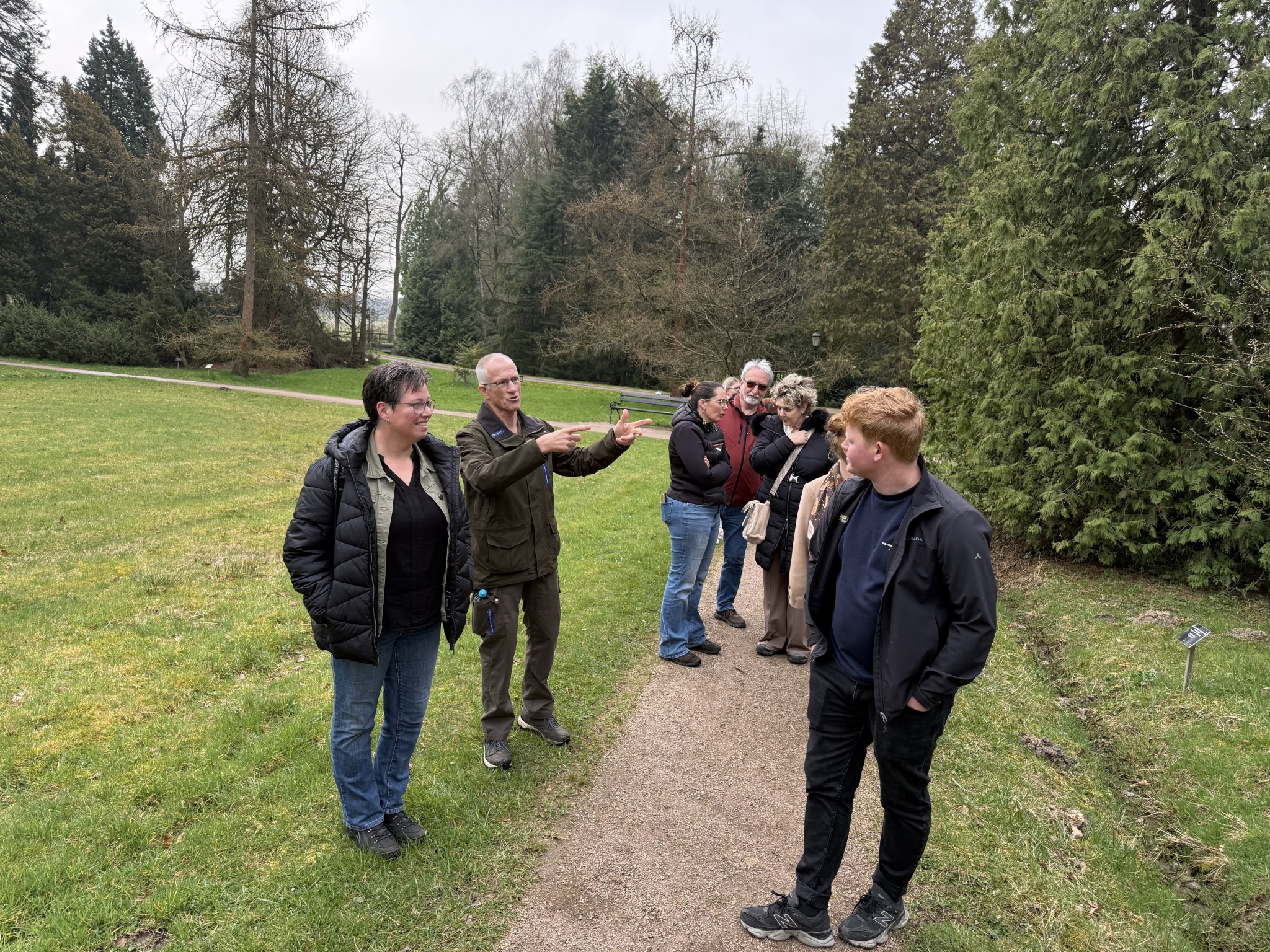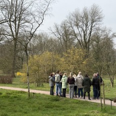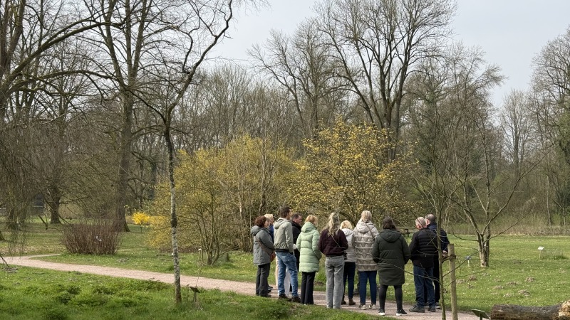 Vervolgens wandelden we gezamenlijk naar Arboretum Poort Bulten. Onder begeleiding van drie enthousiaste gidsen van Natuurmonumenten werden we rondgeleid door dit bijzondere park. Tijdens de wandeling ontdekten we de rijke variatie aan bomen, planten en verhalen die het arboretum zo uniek maken.