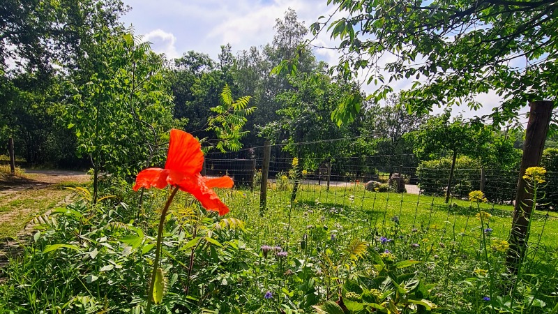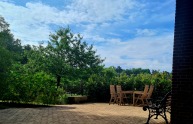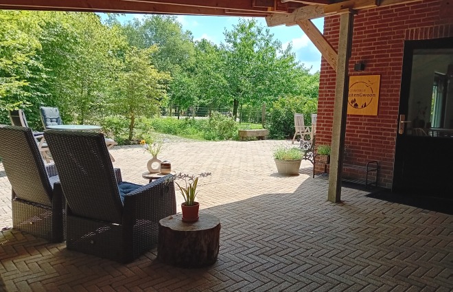 Een prachtig compleet nieuw vrijstaande B&B met veel privacy. Het verblijf is voorzien van een eigen oprit, tuin met veranda (sauna) met uitzicht op het bos/ weide (waar de reeën zich graag vertoeven, de specht die zich graag laat horen en het een speeltuin is voor eekhoorntjes/ konijnen). Er is een oplaadpunt voor elektrische fietsen onder de veranda.