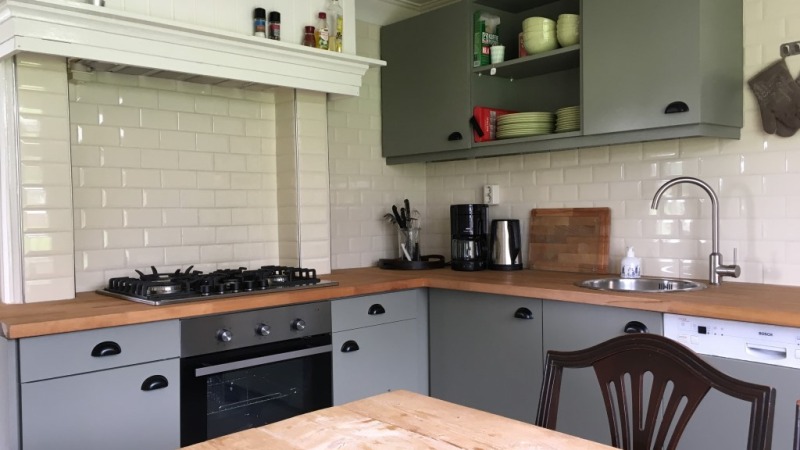Opa’s Huisje is een gezellige vakantiewoning geschikt voor 8 personen. Het heeft een eigen oprit en ligt midden in het weiland dat in het seizoen wordt begraasd door de (melk)koeien. Je hebt er dus veel privacy. Zo nu en dan zal een nieuwsgierige koe een blik naar binnen werpen of bij je komen staan als je buiten bent. Vanuit de keuken heb je prachtig zicht op het weiland, het erf, de stal en de oude gevel van de boerderij.