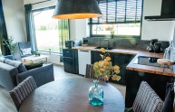 De keuken is voorzien van een vaatwasser, vierpits kookplaat, combi-magnetron, waterkoker, koelkast met vriesvak en een Senseo apparaat.