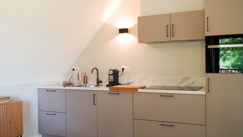 - Moderne keuken met inductiekookplaat, vaatwasser, koelkast met vriesvak, combi-oven