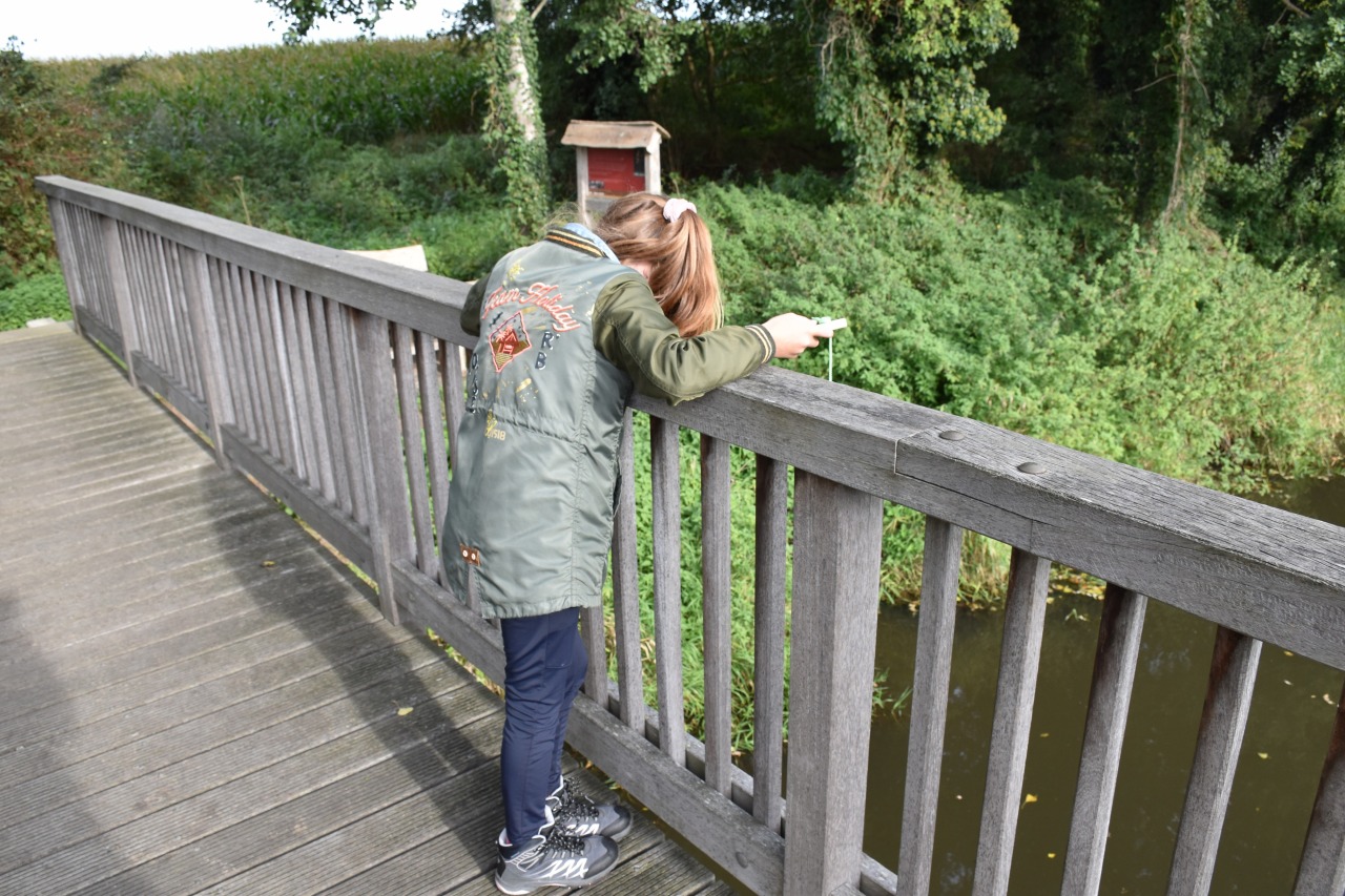 We naderen een houten vlonder en gewapend met ons schepnet en frisse moed gaan we op ontdekkingstocht onder water naar waterdiertjes. Ze zitten verstopt tussen de planten of in de bovenste laag van de bodem. De waterdiertjes houden zich in het schepnetje opvallend stil, daarom lijkt het een paar keer of we niets gevangen hebben. We keren ons netje binnenstebuiten in de bak en zien al wat kriebelen. Aan de hand van de waterdierenkaart bestuderen we onze vangst. Schep met je netje dus langs en tussen de waterplanten, dan heb je gegarandeerd beet!