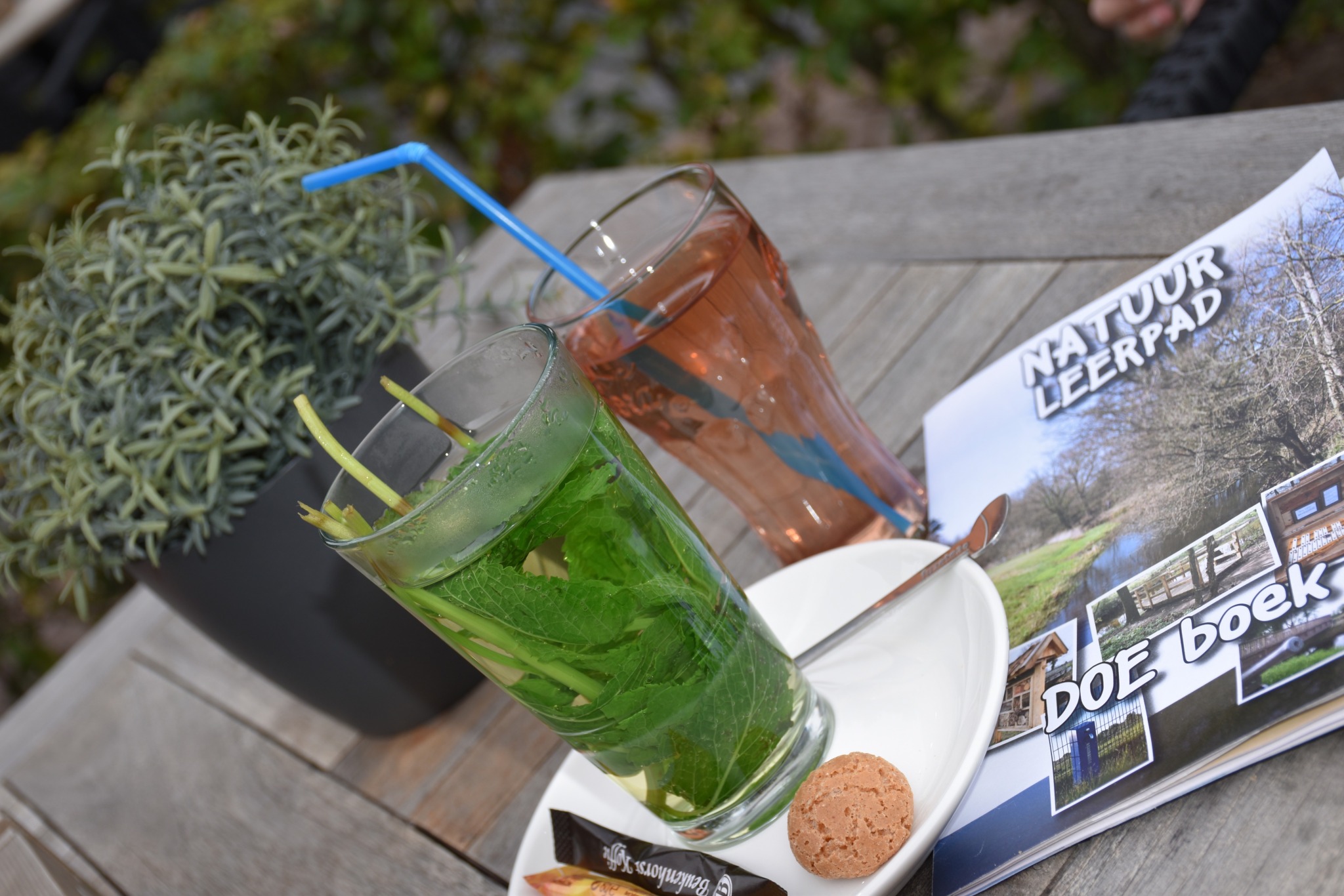 We wandelen verder langs de Dinkel en komen langs weilanden met grazende koeien. Een mooi gezicht. We lopen terug naar café restaurant ’t Sterrebos en zoeken een mooi plekje uit op het terras. Onder het genot van een glas ranja en kop thee komen we bij van ons avontuur!